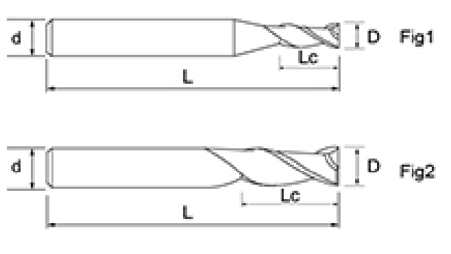 | Nej. | Diameter D | Flöjtlängd Lc | Total längd L | Shank Dia d | Bladräkning F |