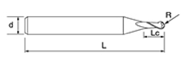| Nej. | Diameter D | R Vinkel R | Flöjtlängd Lc | Total längd L | Shank Dia d | Bladräkning F |