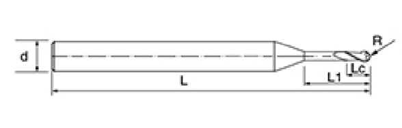 | Nej. | Diameter D | R Vinkel R | Flöjtlängd Lc | Effektiv längd L1 | Total längd L | Shank Dia d | Bladräkning F |