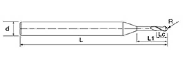 | Nej. | Diameter D | R Vinkel R | Flöjtlängd Lc | Effektiv längd L1 | Total längd L | Shank Dia d | Bladräkning F |