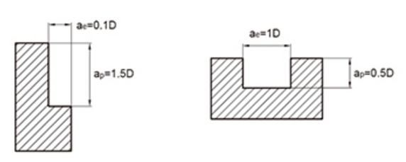 1. Tabellen ovan är baserad på riktvärdena för sidfräsning. Skärförhållandena för spårfräsning baseras på 70 % av matningshastigheten i tabellen ovan.