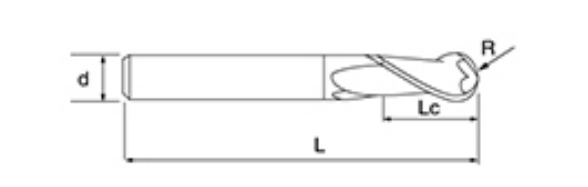 | Nej. | Diameter D | R Vinkel R | Flöjtlängd Lc | Total längd L | Shank Dia d | Bladräkning F |