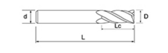 | Nej. | Diameter D | Flöjtlängd Lc | Total längd L | Shank Dia d | Bladräkning F |
