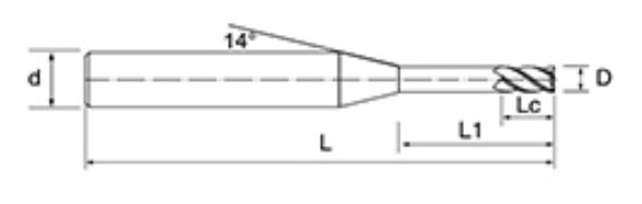 | Nej. | Diameter D | Flöjtlängd Lc | Effektiv längd L1 | Total längd L | Shank Dia d | Bladräkning F |