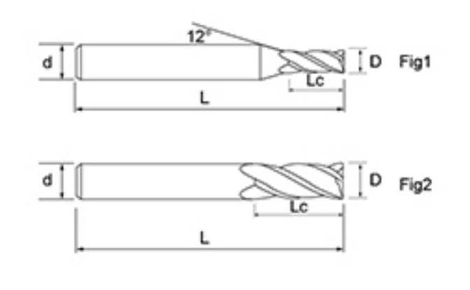 | Nej. | Diameter D | Flöjtlängd Lc | Total längd L | Shank Dia d | Bladräkning F |